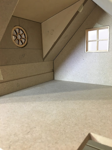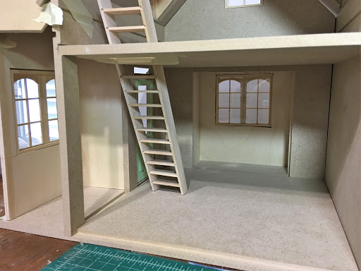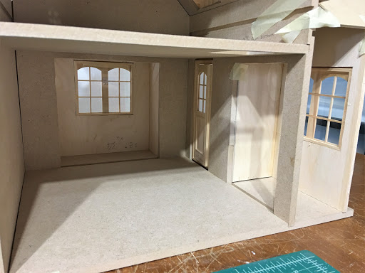 Here are some more photos of the expanded interior. While it's still a pretty compact cottage, the usable space has been improved considerably, and the character of the new facade gives ample opportunity for cuteness overload! I hope I can make the most of it! The old dado tracks will be filled in with 1/8" x 3/8" basswood strip.