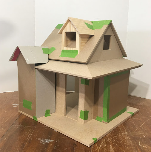 I got the kit pieces taped together, then made cardboard walls/roofs to help mock up the additions. So far, I liked where it was heading...
