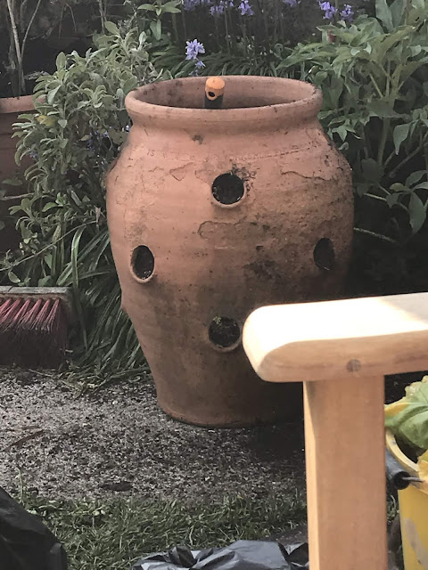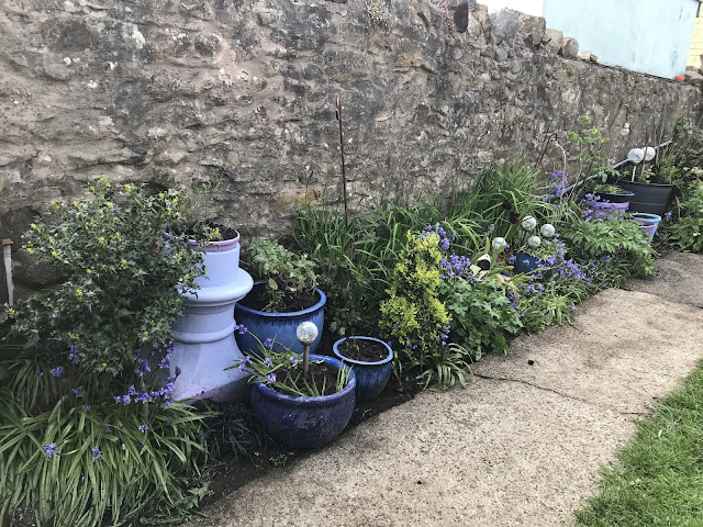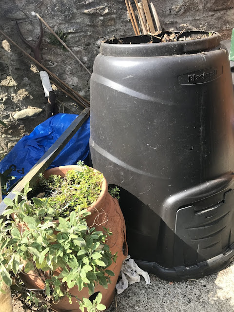 So for years, I've had a compost bin down the bottom of the garden, and it was kind of in the way of the back gate. Was not a problem when we didn't need to use it but since Bluebell, when we have used it is it so easy as the back ginnel does lead directly onto the playing field where I walk her and not only that - coming in that way especially after the rain means I can hose her off in the garden = less mud through the house! Plus it will be easier to put the bins out! I have called our compost bin the tardis for years!Bluebell was taken for long walkies by Mr 23 whilst we did the messy stuff because she is too 'helpful'. It looks nice and tidy now. Soon the bluebells will make way for the irises.