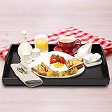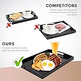 ModernLuxy - Sturdy and stylish Our extra large premium bamboo tray is designed to be one of the biggest one on the market measuring a generous 24x14x275 Practical and decorative light yet durable it is perfect for serving a wide variety of foods snacks and drinks A great home decor accessory made with expert craftsmanship Classic black tray color with a smooth finish looks elegant in any environment Serve guests or create awesome food displays in your kitchen or on your coffee table Be the ultimate party host Impress your guests Our high quality serving platter are great for a variety of uses Perfect for serving appetizers sandwiches entrées cocktails tea coffee desserts and more High walls makes it an ideal drink tray to prevent tall beverages from tipping over You can also use it as a sofa tray or ottoman topper to hold things like tv remotes phones electronics plants and books Matches perfectly in a rustic farmhouse decor or modern interior setting