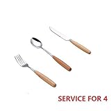 Mengbaobao - Elegant beech wood handles accent stainless steel cutlery bring you natural feeling Well crafted food grade 304 stainless steel Package includeds 12 pieces of wood handle flatware service for 4 Quality of life suitable for travel travel picnic business office dining room dining Ergonomic design unique wooden handle provides more comfortable natural texture