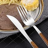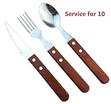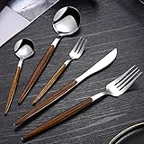 Sturdy and healthy the stainless steel spoons and forks knifes are completed electroplated with titanium metal Sturdy structure and no worry about bending rustproof and durable for long time useOur flatware sets are heat and rustresistant Widely use for all situations this wooden handle stainless steel flatware set suitable for everyday home use hotel restaurant entertaining party buffet bistro camping picnic etc Makes a great gift presented for family and friends Great gift at christmas birthday mothers day fathers day valentines day and so on