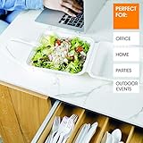 KUUUM - Feels like real flatware extralong 75 in As regular silverware heavyweight improved ergonomics 30 degrees curved tail classical white Easy to forget theyre compostable Give back to environment enjoy the possibility to dispose at the nearest composting facility and reduce your ecological footprint Sturdiest strongest on the market disposable utensils that do the job Wont bend or break with heat up to 185 f also dishwasher safe No wooden taste splinters or soaked pieces in your mouth