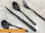 Exquisite craftthe silverware set have proper thickness and weight to perfectly fits in your hand smooth surface make it always remain shiny comfortable to hold It matches well with most occasion wedding catered event family reuniontheme restaurant or daily home dinner Complete flatware set for 4 the black cutlery set consist of 4 dinner knives 4 dinner forks 4 dinner spoons 4 teaspoons and 4 dessert forks This set is perfect for daily and formal use