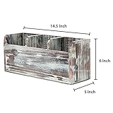 3 Compartment Rustic Torched Wood Utensil Holder, Flatware Caddy and Organizer Tray