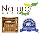 Nature Gear - Organize any drawer in seconds Our adjustable bamboo organizer expands to fit any drawer and has 9 separate compartments making it perfect for organizing things in any room of your home Easily find kitchen flatware accessories and the cutlery you need for that perfect meal Keep tabs on pens pencils craft art supplies so you can spend more time being creative and less time searching for the right sized brush A perfect fit means no measuring is needed as our design adjusts to be a compact 125 inches to a generous 19 inches Super deep compartments allow multiple items to be stored in each one significantly reducing drawer clutter in practically any room of your home