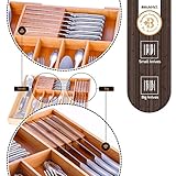 Bambüsi - Utensil drawer organizer bambüsi silverware organizer is custom made to store your cutlery flatware and knife sets this utensil organizer comes with 2 removable knife blocks to hold large and small knives Versatile use use this utensil tray drawer organizer for other storage and organization practices like jewelry office supplies cosmetics art supplies small tools personal accessories or general junk drawer organizer Kitchen cutlery tray kitchen silverware tray for drawer measures 2 in height x 17 long it expands from 13 to 225 inches to add 2 additional slots to 7 compartments in total