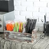MyGift - Official mygift product utensils not included Features 3 separate compartments for straws forks knives spoons napkins and more Approximate dimensions in inches 65 h x 1475 w x 50 d Simplistic flatware holder caddy with rustic torched whitewash finish Perfect for organizing flatware at picnics buffets parties or events